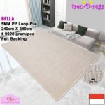 - LOOP PILE DAN ANTI SLIP. 100% benang polypropylene pada permukaan karpet dan diproses dengan tufting loop pile yang membuat gelombang-gelombang kecil dan didukung dengan gel karet backing yang memberikan fitur anti slip sehingga tidak mudah bergeser.