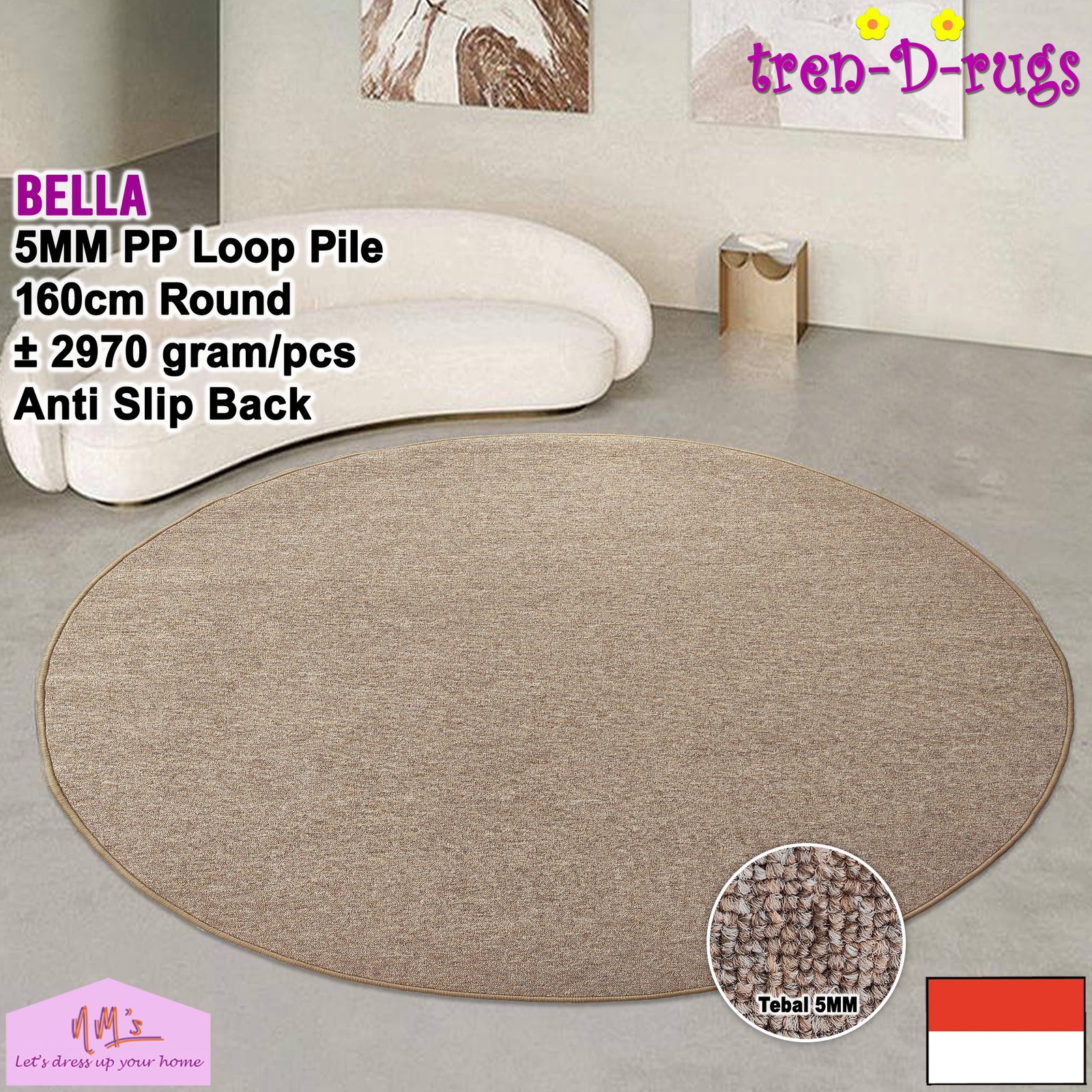- KUALITAS TERBAIK. Brand tren-D-rugs yang merupakan produk in-house dari NM’s, dibuat di Indonesia kami memberikan karpet berkualitas dengan pengalaman pembeli yang memuaskan.