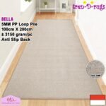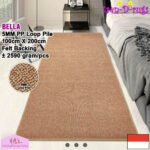 - TEBAL DAN RAPI. Series Bella memiliki tebal 5mm sehingga nyaman untuk diinjak atau diduduki. Dengan pinggiran karpet yang sudah diobras keliling memberikan tampilan rapi baik untuk permukaan atau belakang. Cocok untuk diletakan di ruang tamu atau ruang keluarga.