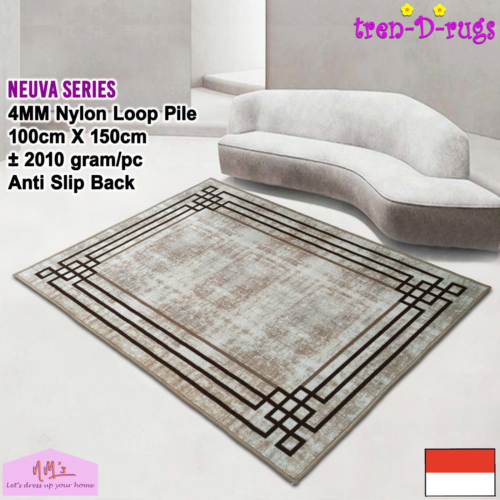 - TAK PERLU KHAWATIR DENGAN KUALITAS. Brand Tren-D-rugs yang merupakan produk in-house NM’s. Di buat di Indonesia kami memberikan karpet berkualitas dengan pengalaman pembeli yang memuaskan.