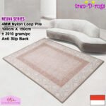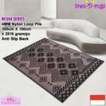 - LOOP PILE DAN ANTI SLIP. 100% benang nylon diproses dengan tufting loop pile yang mengubah benang menjadi gelombang-gelombang kecil. Karpet memiliki tebal 4 mm. Dengan dukungan gel (karet) pada bagian bawah karpet yang memberikan fitur anti slip sehingga karpet tidak bergeser-geser.
