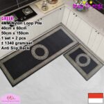 LOOP PILE DAN ANTI SLIP. 100% benang nylon diproses dengan tufting loop pile yang mengubah benang menjadi gelombang-gelombang kecil. Keset dan karpet lorong memiliki tebal 4 mm. Dengan dukungan gel (karet) pada bagian bawah keset dan karpet lorong yang memberikan fitur anti slip sehingga keset dan karpet lorong tidak bergeser-geser.