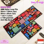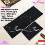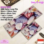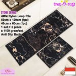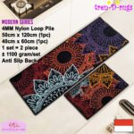 • LOOP PILE DAN ANTI SLIP. 100% benang nylon diproses dengan tufting loop pile yang mengubah benang menjadi gelombang-gelombang kecil. Keset dan karpet lorong memiliki tebal 4 mm. Dengan dukungan gel (karet) pada bagian bawah keset dan karpet lorong yang memberikan fitur anti slip sehingga keset dan karpet lorong tidak bergeser-geser.