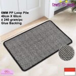 • CUT & LOOP PILE DAN GLUE BACK. Diproses dengan tufting loop pile yang mengubah benang menjadi gelombang-gelombang kecil dengan tebal keset 6 mm. Didukung dengan glue back memberikan ketahanan keset sehingga tidak mudah mengkerut saat diinjak.