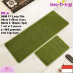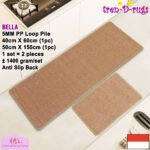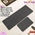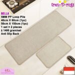 - LOOP PILE DAN ANTI SLIP. 100% benang polypropylene pada permukaan karpet dan diproses dengan tufting loop pile yang membuat gelombang-gelombang kecil dan didukung dengan gel karet backing yang memberikan fitur anti slip sehingga tidak mudah bergeser.