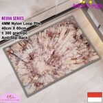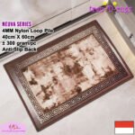 LOOP PILE DAN ANTI SLIP. 100% benang nylon diproses dengan tufting loop pile yang mengubah benang menjadi gelombang-gelombang kecil. Keset memiliki tebal 4 mm. Dengan dukungan gel (karet) pada bagian bawah keset yang memberikan fitur anti slip sehingga keset tidak mudah bergeser.