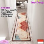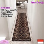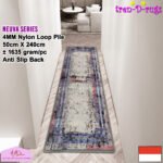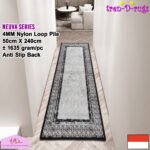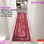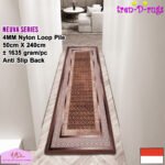 LOOP PILE DAN ANTI SLIP. 100% benang nylon diproses dengan tufting loop pile yang mengubah benang menjadi gelombang-gelombang kecil. Karpet lorong memiliki tebal 4 mm. Dengan dukungan gel (karet) pada bagian bawah karpet lorong yang memberikan fitur anti slip sehingga karpet lorong tidak bergeser-geser.