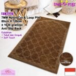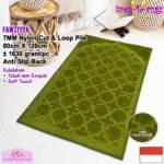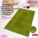 ANTI SLIP DAN CUT AND LOOP PILE. Bagian bawah sajadah didukung oleh gel (karet) yang memberikan fitur anti slip, sehingga sajadah tidak mudah bergeser saat anda sholat. Diproses dengan tufting cut and loop pile yang mana benang dibuat menjadi gelombang kecil yang berulang lalu di cut pile pada tempat dan tinggi yang diinginkan.