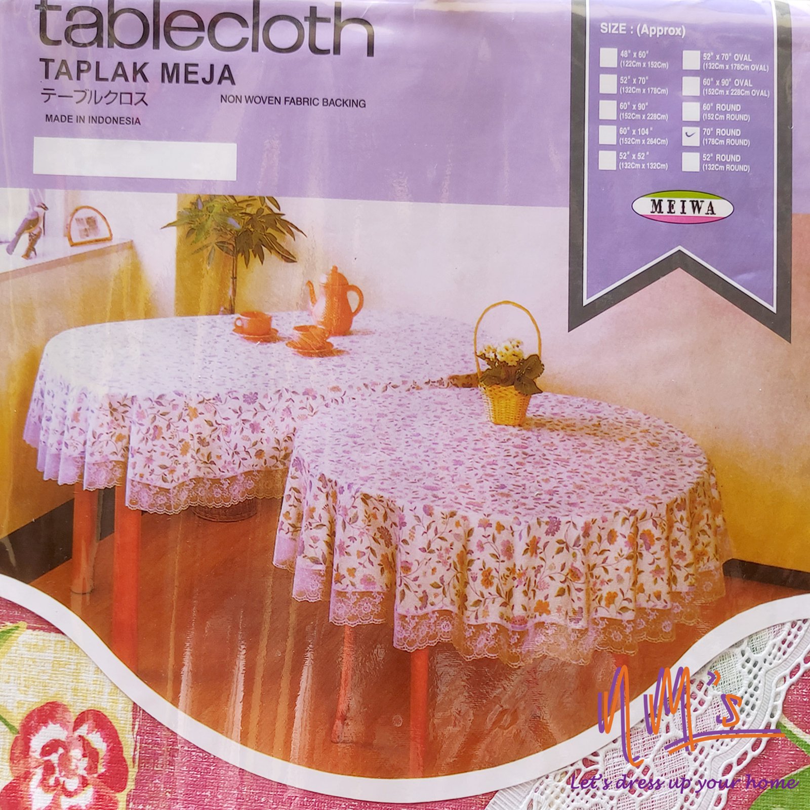 Taplak Meja bahan PVC bentuk persegi panjang transparan ukuran diameter 70″ atau x 178 cm dengan renda putih pada pinggirnya. Dibuat dengan bahan berkualitas bersifat tahan panas maximum 60 derajat celcius (140 derajat F). Cocok untuk meja dengan 4-6 kursi. Dikemas dengan rapi. Jika taplak meja tampak kotor atau lusuh disarankan untuk tidak dicuci, cukup dilap dengan air hangat dan sedikit sabun. Hanya untuk penggunaan di meja saja.